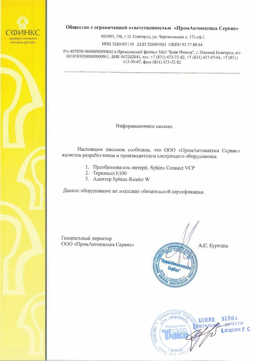 Сертификаты качества